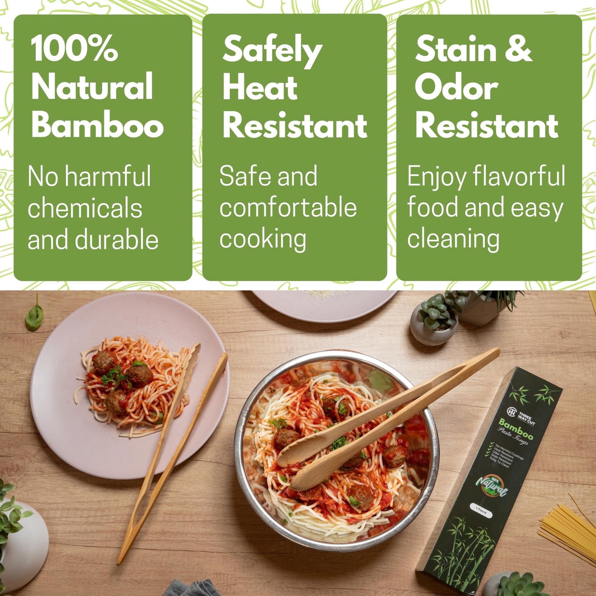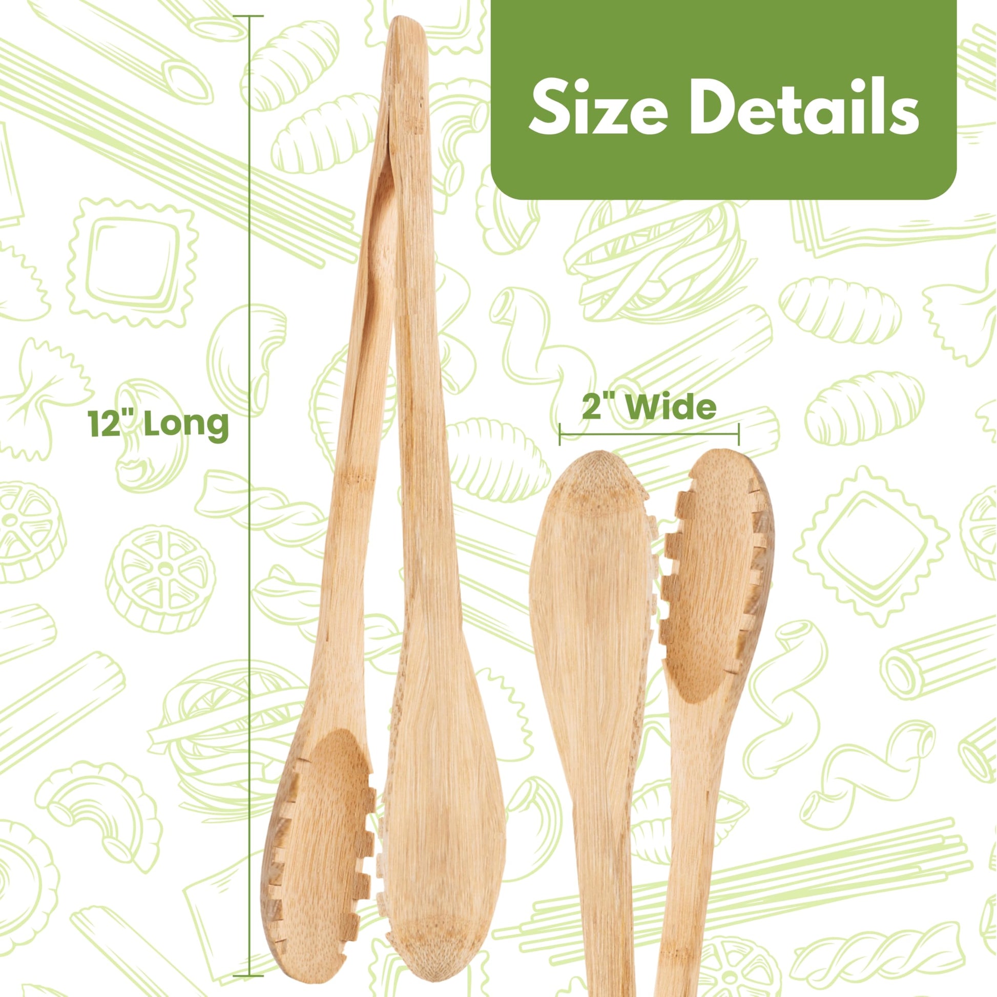 - MULTIPURPOSE KITCHEN TONGS: Versatile and perfect for handling a wide variety of foods, from cooking pasta to serving salad, meat, fish, steaming seafood, frying, and more. These bamboo pasta tongs for cooking are the ideal length to keep heat away from your hands while providing the perfect balance between usability and easy storage, making these wooden kitchen tongs an essential tool for any kitchen. Great for use as pasta bamboo salad tongs, salad tongs for serving, or wooden cooking tongs for the kitchen.