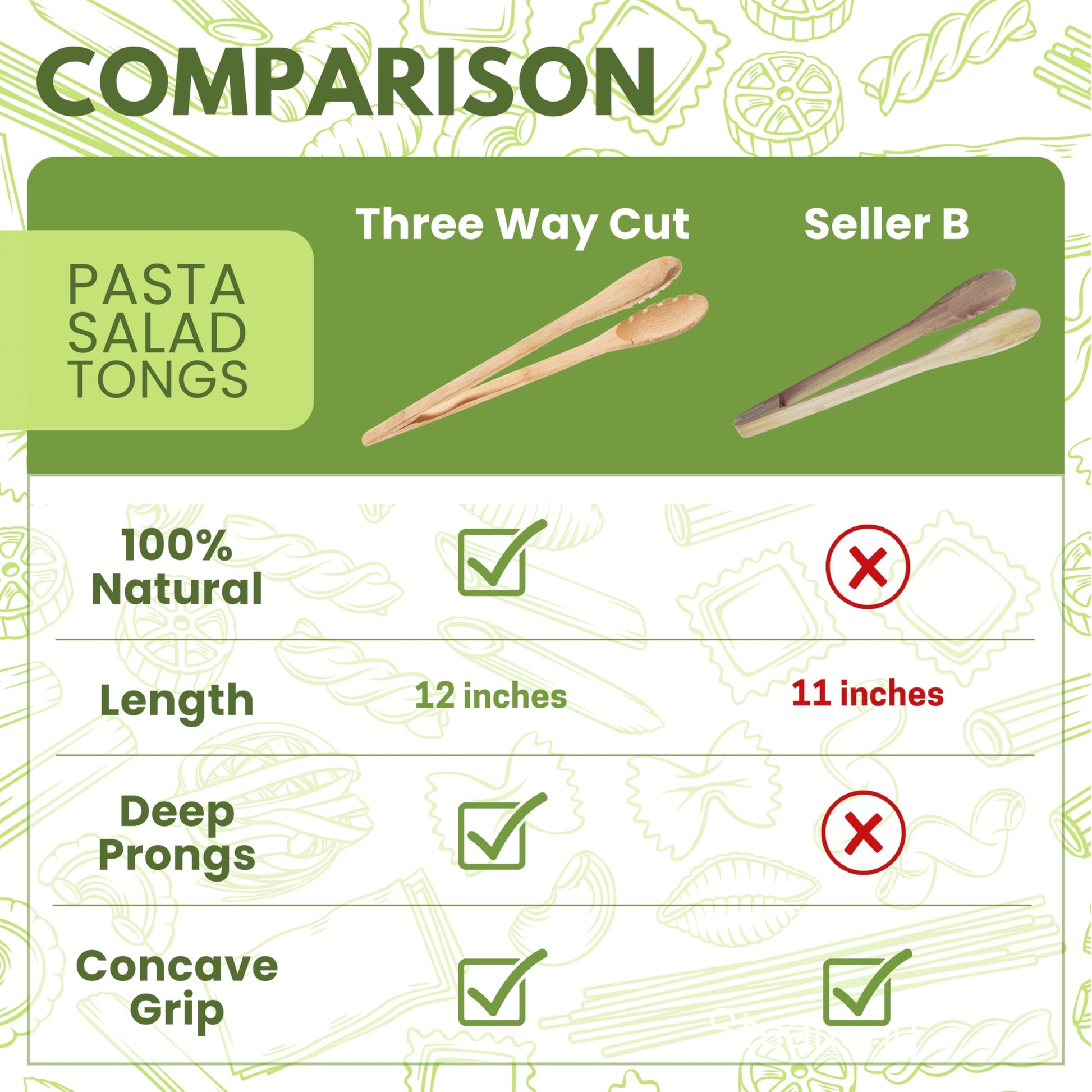 - SPECIALIZED KITCHEN WOODEN TONG FOR PASTA & SALAD: These wooden pasta tongs for cooking are perfect kitchen tongs with heat-resistant, non-stick tong features. The secure grip while serving and serrated edges ensure control, while the deep concave tong head provides easy lifting of not just the pasta but also the sauce and other ingredients. Ideal as spaghetti tongs, pasta and salad food tongs for serving, and food tongs for cooking.