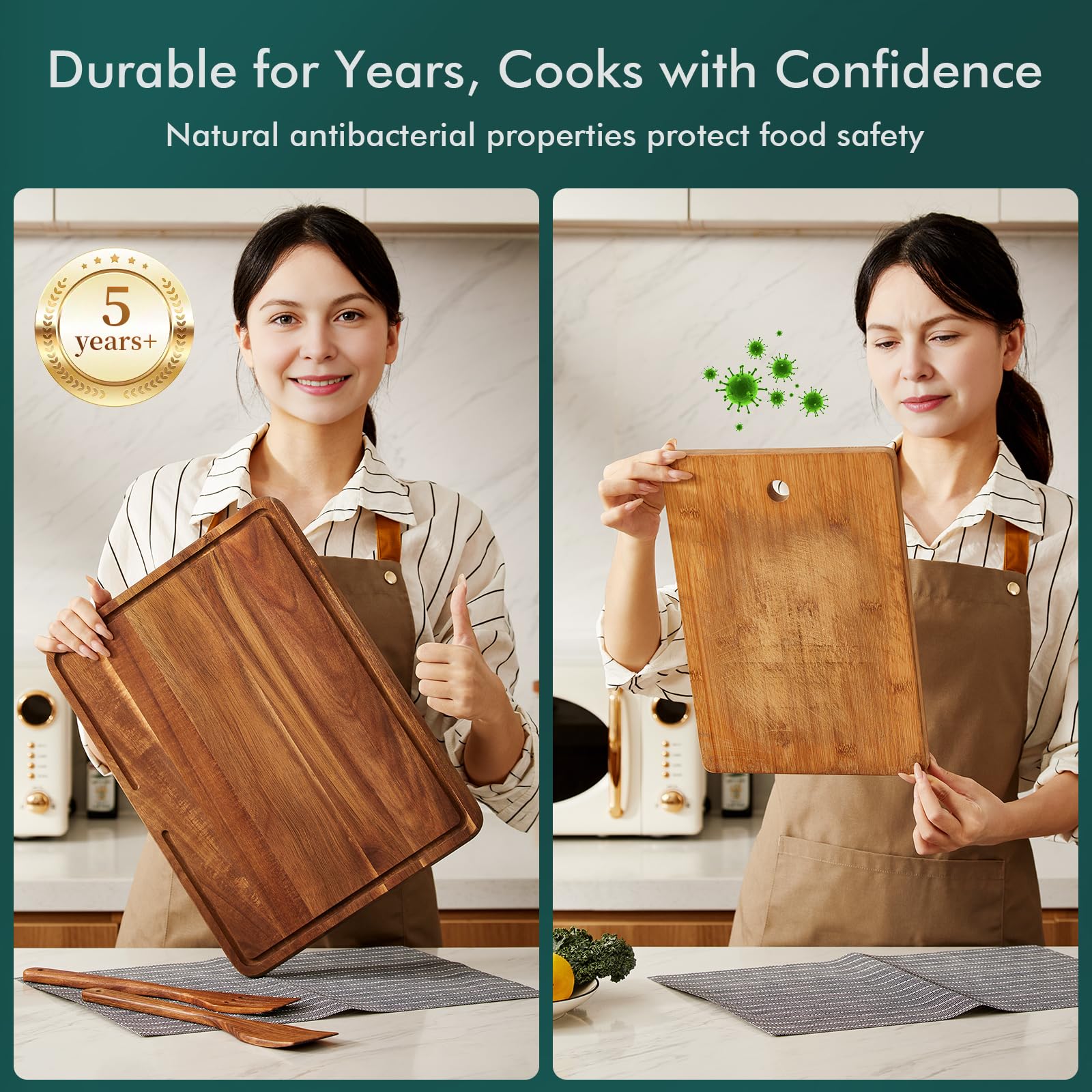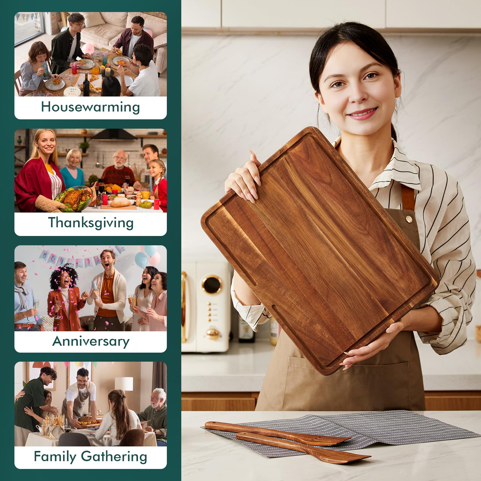 - Ideal Gift for Housewarming: The CHOSIN acacia wood cutting board set is fully functional. Whether you're a professional chef, a home cook, or someone just starting out in the kitchen, this cutting board offers the perfect surface for all your food preparation needs. It's also an ideal gift for housewarming, Mother's Day, anniversaries, Thanksgiving, family gatherings!