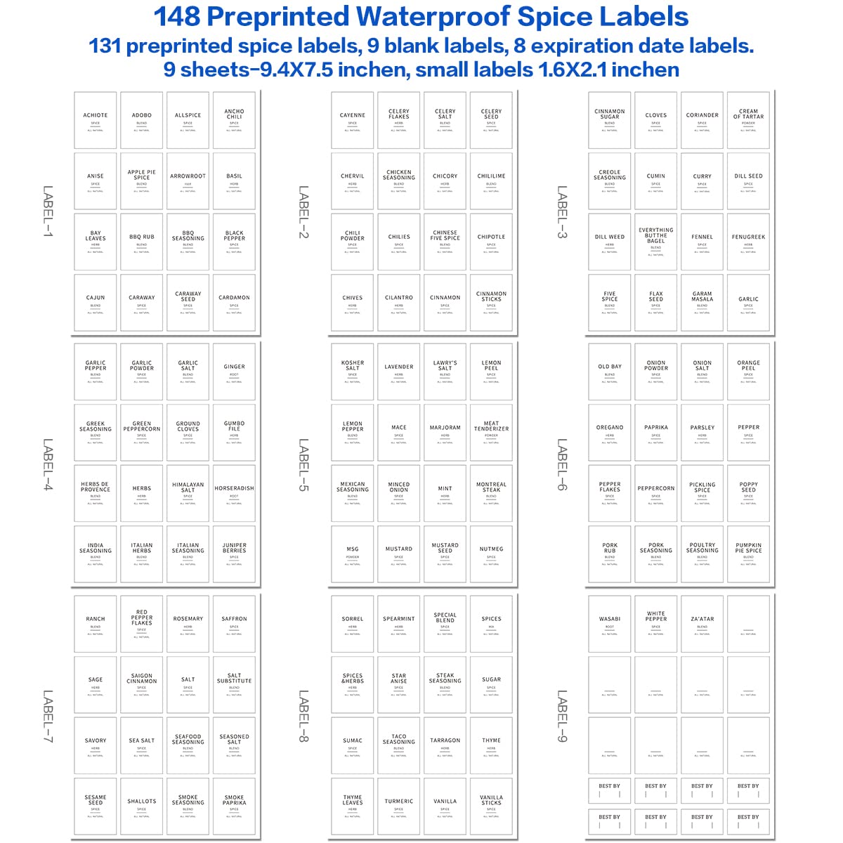 - 【PERFECT FOR PANTRY】148 kitchen spice labels for coffee containers to keep your food fresh and pantry tidy. Minimalist labels are black text on white food label stickers suitable for all airtight sugar canisters. Pantry decal organization labels are preprinted on premium waterproof vinyl stickers that won't tear or peel off but can easily be removed.