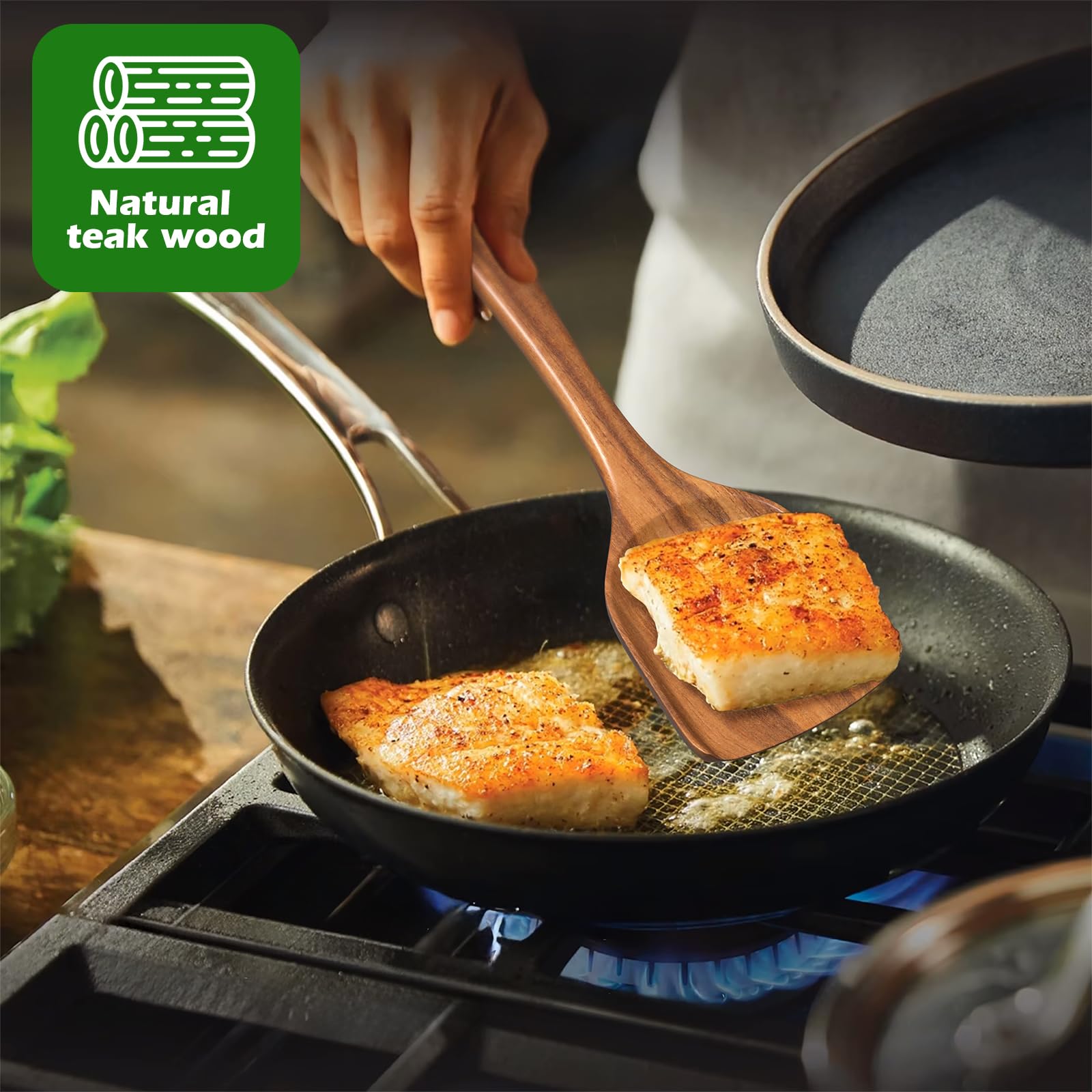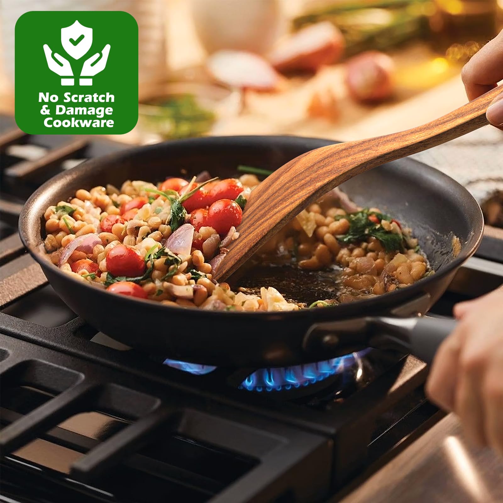 - First-class Craftsmanship & Quality: Each wooden utensil is crafted from premium solid teak wood, our kitchen utensils feature a hand-polished finish that ensures a smooth, burr-free surface that stays beautiful for years.non-scratch edges to protect delicate cookware surfaces, with ergonomic handles for maximum comfort. The heat-resistant construction (up to 400°F/200°C) and extended designs safeguard your pots and pans, while the weight-balanced structure effortlessly handles thick batters and risotto