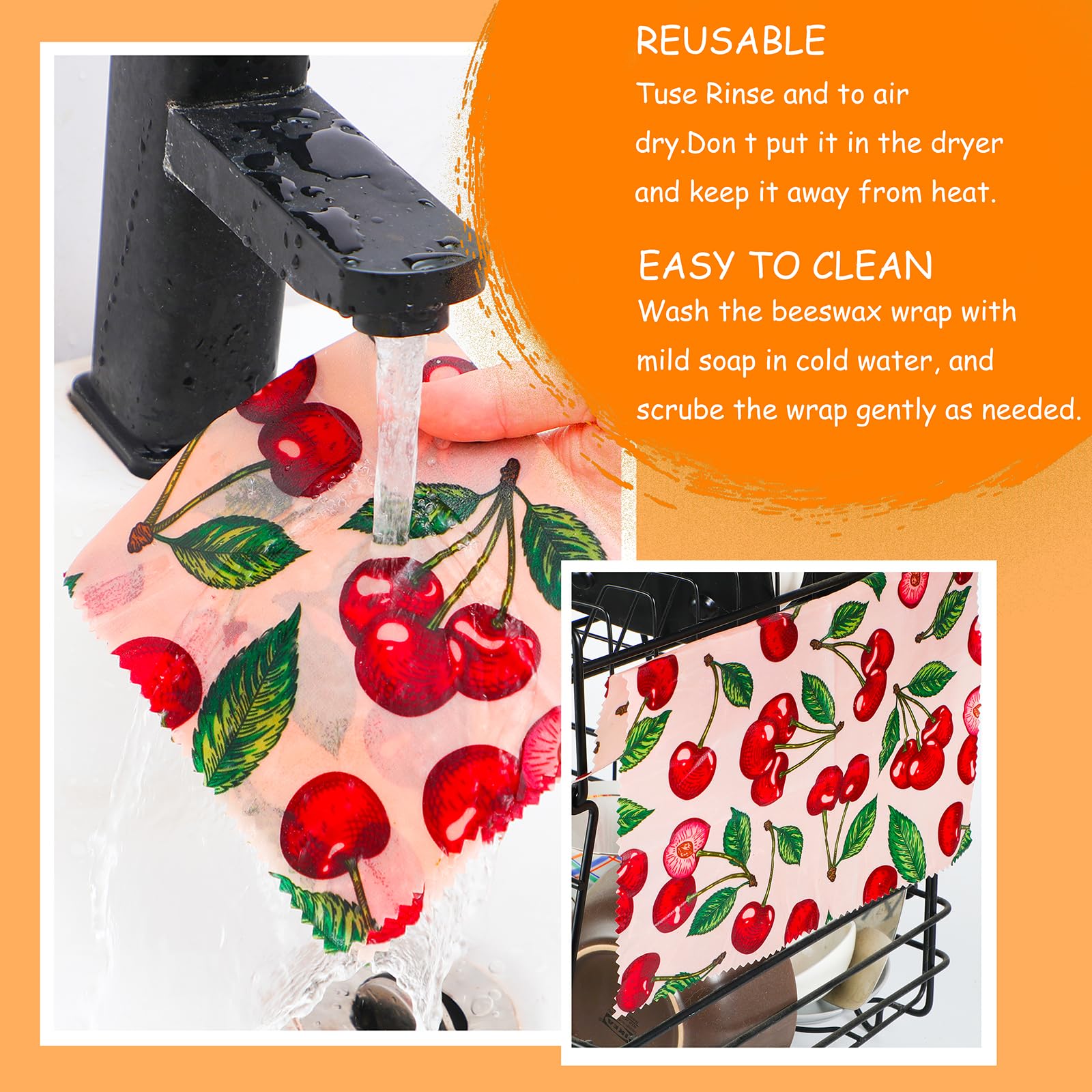 - Easy to Clean: Beeswax wrappers are hydrophobic and can be rinsed with water if grease, oil or food residue is stuck to them while wrapping. The beautifully patterned wrapper is reusable and is a perfect substitute for disposable cling film.