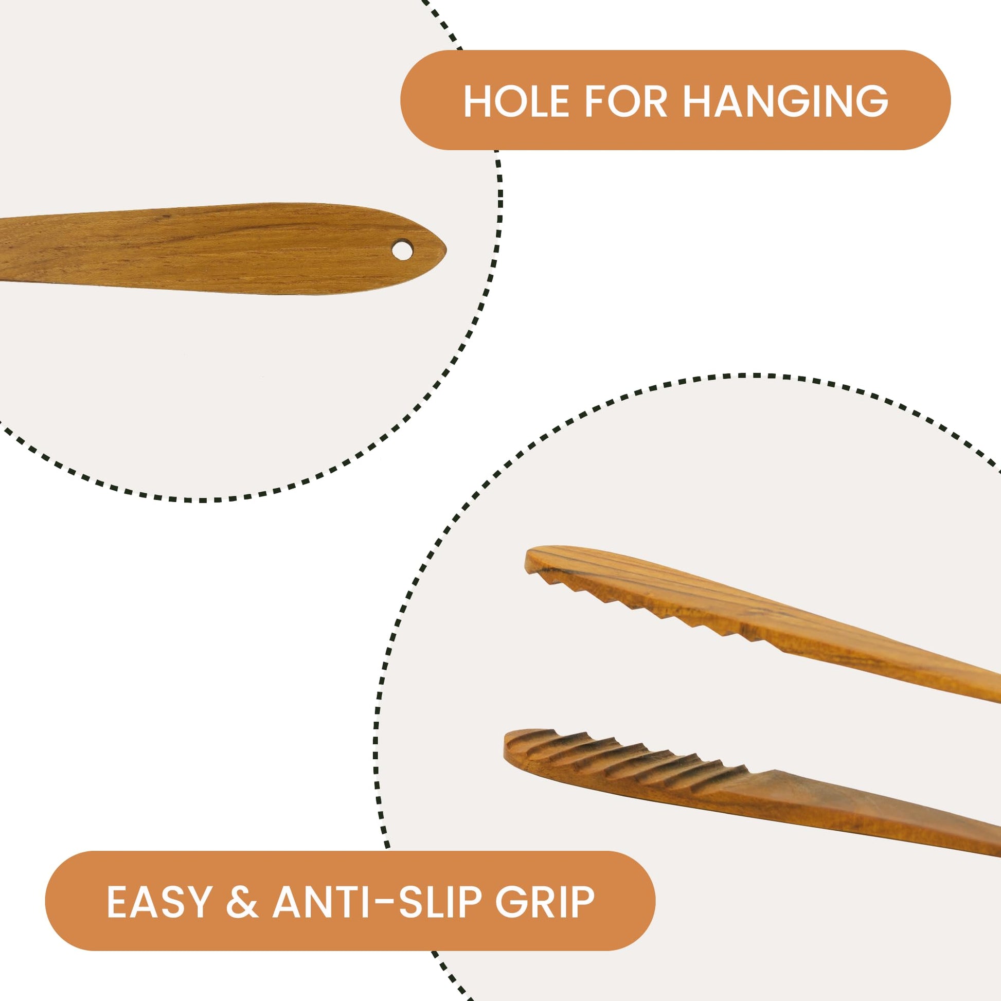 - Teak Wood Tongs for Cooking & Salad Serving (9" & 12", Set of 2).