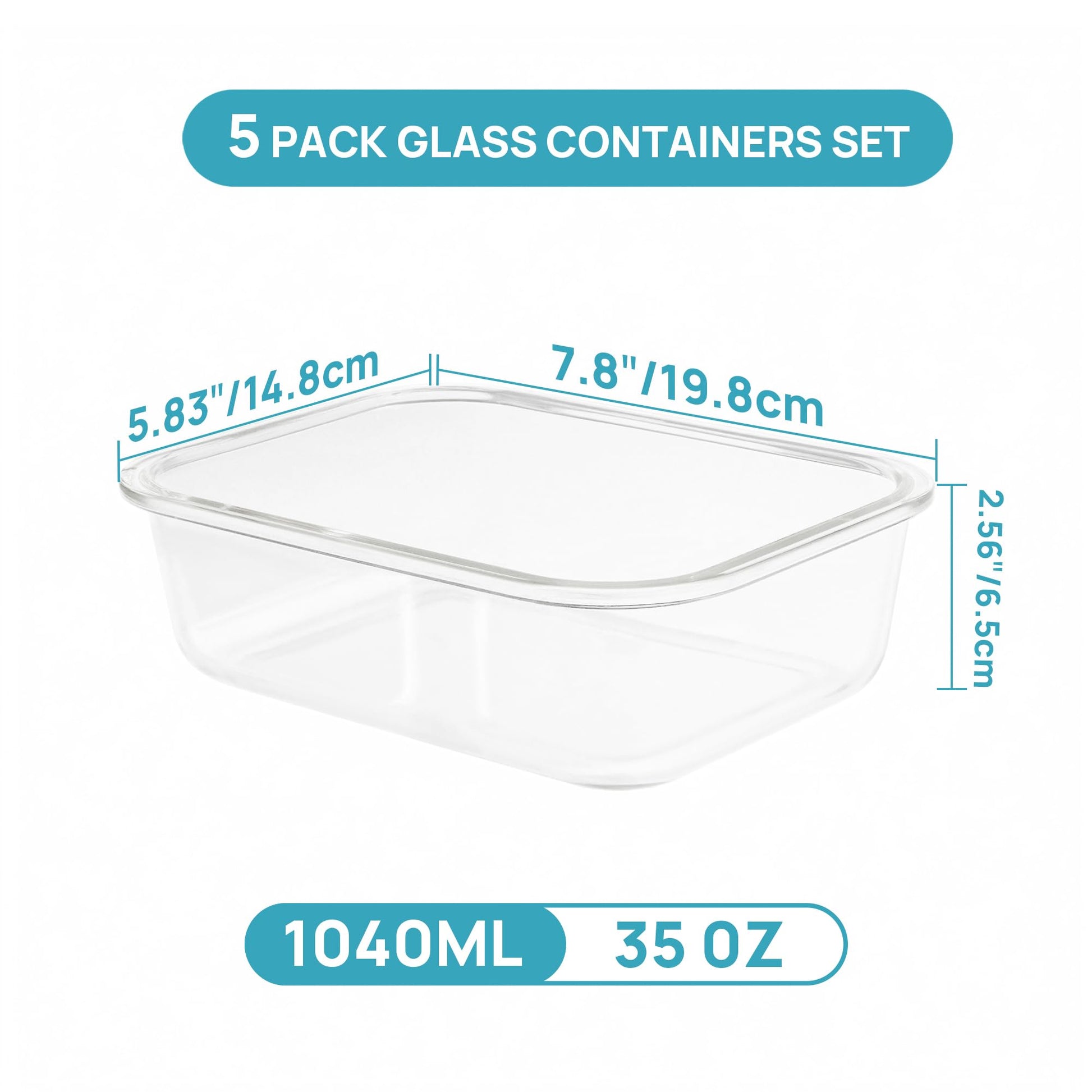 Vtopmart 5 Pack 35oz Glass Containers with Bamboo Lids,