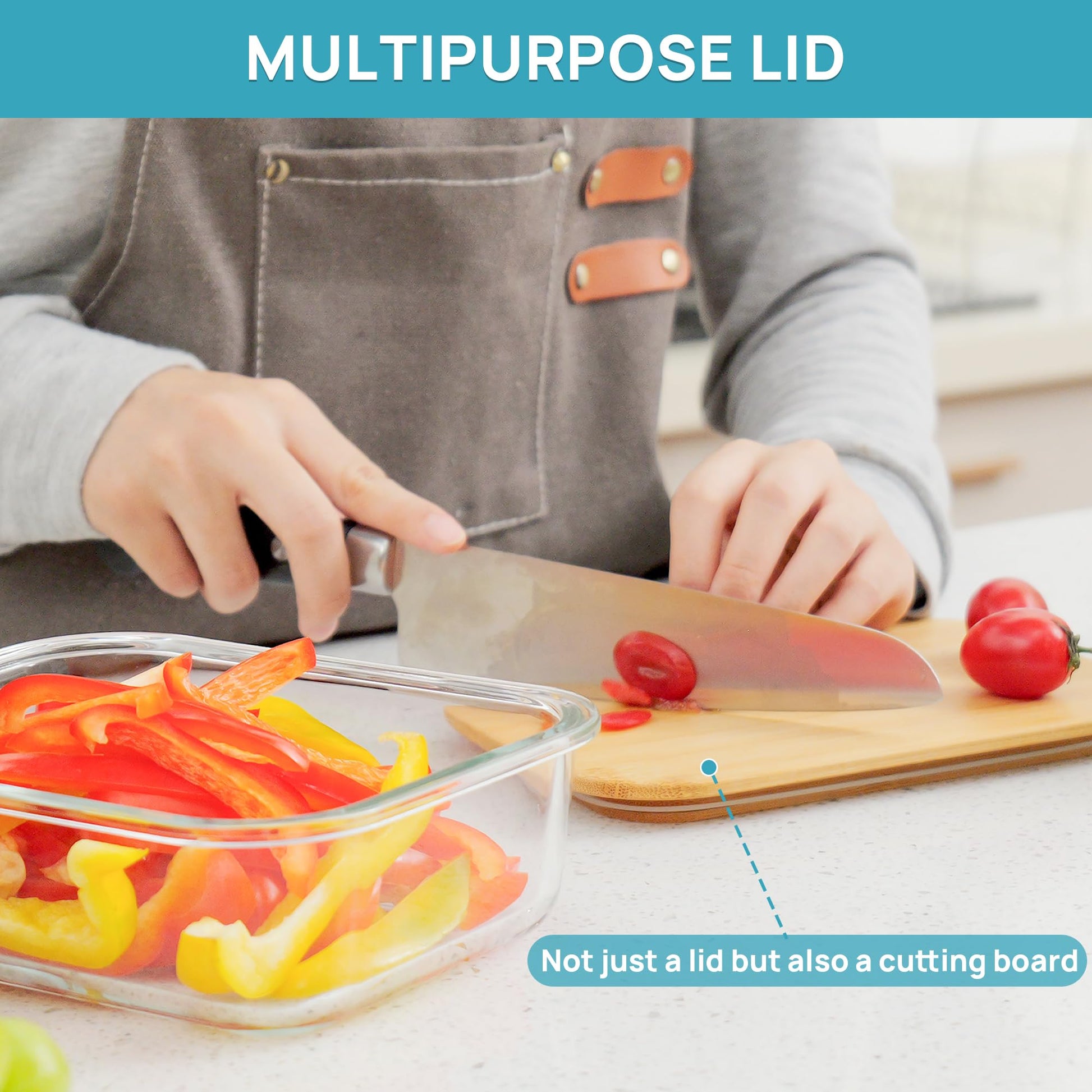 - 【Bamboo Lids with Silicon Seals】It's more than a lid; the stylish bamboo lids can be used as a cutting board for cheese, vegetables, fruits, and more. Please keep the bamboo lids dry after washing with water, and do NOT recommend them for any fluid food or soup or overfilling the food in containers.
